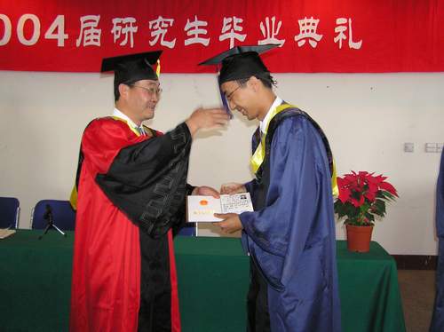 王萬緒院長(zhǎng)向畢業(yè)生頒發(fā)學(xué)位證書
