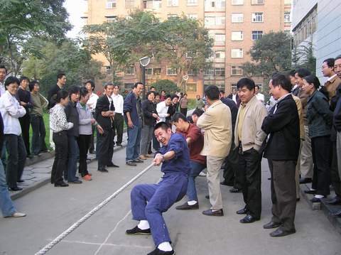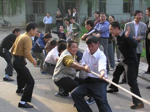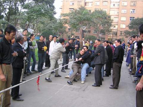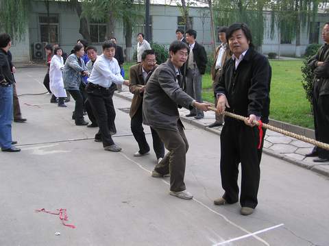 為了迎接建國55周年華誕,豐富我院職工的文體生活,增強集體觀念和團隊意識,我院于9月27、28日和10月9、10日舉辦了“迎國慶”拔河比賽,八支參賽隊伍經(jīng)過激烈的初賽、半決賽、決賽,花落誰家,終于“一拔分曉”。它們是: