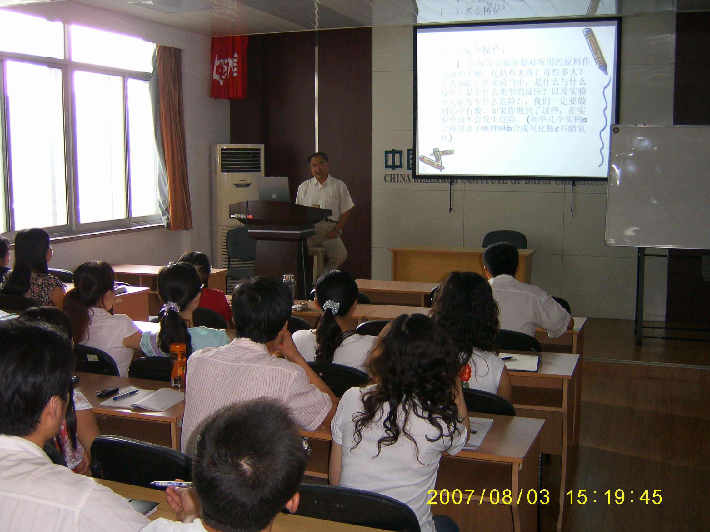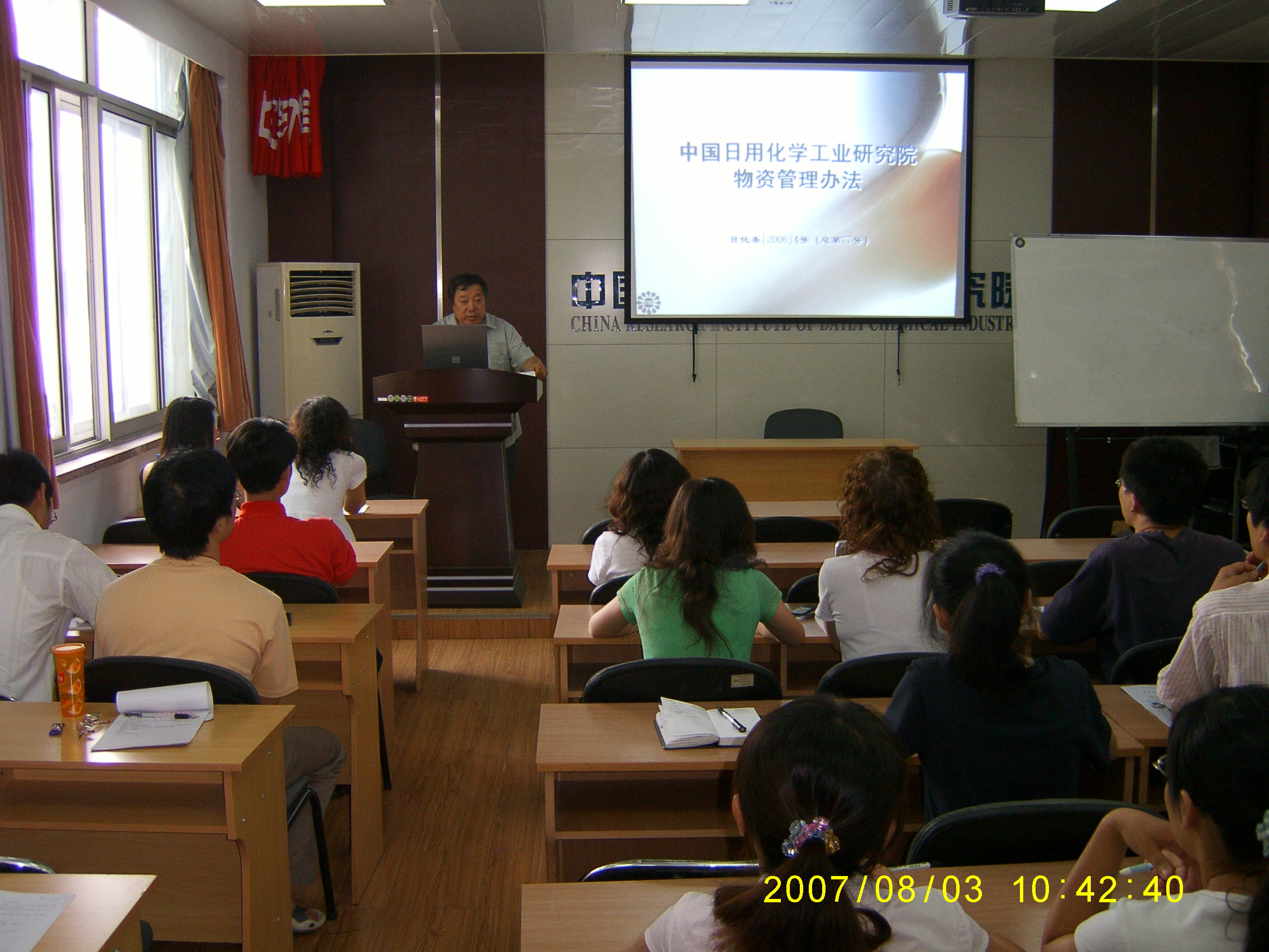 在這次入院教育中,院領導非常重視,各有關部門都精心準備宣講材料。會上,王萬緒院長從講日化院的歷史開始,詳細講了我院的發(fā)展及前景,講了我院在行業(yè)發(fā)展中的貢獻和地位。針對新同志剛入院,從不同的角度談了新同志應該如何學習,如何工作,如何做人及如何做事,如何成才。辦公室、研究生處、科技處、重點實驗室、財務處、條件處有關人員就人事勞動工資、考勤制度、安全保衛(wèi)、計劃生育及相關醫(yī)療保險制度、研究生培養(yǎng)管理制度、科研管理制度、開題、立項程序、實驗室安全與常規(guī)教育、財務報銷管理制度、物資領用制度等作了詳細的講授。重點實驗室還安排了有關表面活性劑知識的講座,隨后還將要逐步安排有關科研講座。