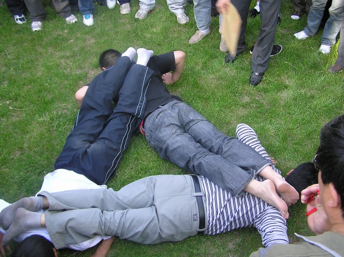 ??? 運動會比賽項目主要分為團體和個人,有 團體飛鏢、集體跳繩、滾鋼瓶、袋鼠跳、三角俯臥撐、提袋跳等新穎有趣的比賽項目,共有 9支參賽隊伍組成。 比賽以團體項目為主,各參賽隊伍充分發(fā)揮了團結(jié)一致,奮力拼搏的體育精神?!澳凶尤歉┡P撐 ”是集力量與美的一項競技項目,觀眾的加油聲,吶喊聲,歡呼聲此起彼伏;“中老年滾鐵環(huán)比賽”是集趣味性和競技性的一個參賽項目,仿佛把職工們帶回到童年時光。場外觀眾在為自己的隊伍加油之余,也被有趣的項目吸引,在比賽休息時間紛紛上場一試身手。全院職工熱情高漲,歡呼聲此起彼伏,他們發(fā)揚了我院勇于拼搏、勇于創(chuàng)新的光榮傳統(tǒng),在賽場上創(chuàng)出了一個又一個好成績。 整個比賽秩序井然,有條不紊,運動員、裁判員認真遵守比賽規(guī)則,積極維護比賽的公正性。