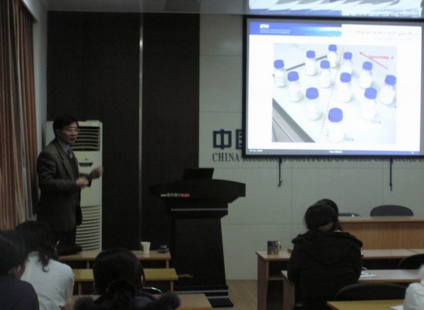 2009 1026 ,瑞士聯(lián)邦大學(xué)蘇黎世分校膠體科學(xué)與工程研究組的學(xué)科帶頭人、資深研究員吳華博士來中國(guó)日用化學(xué)工業(yè)研究院訪問。吳華博士現(xiàn)為瑞士聯(lián)邦理工大學(xué)蘇黎世分校,化學(xué)和生物工程研究所的資深研究員。帶領(lǐng)博士后,博士生及研究生,專門從事有關(guān)膠體科學(xué)及工程方面的應(yīng)用基礎(chǔ)研究。研究方向?yàn)閮捎H聚合物和表面活性劑膠體體系的相互作用力、凝聚機(jī)理及動(dòng)力學(xué)。在國(guó)際一類專業(yè)刊物上發(fā)表論文 70余篇。是多種國(guó)際學(xué)術(shù)刊物的論文評(píng)閱人,從 2005年起一直是中國(guó)長(zhǎng)江學(xué)者海外評(píng)審專家,同時(shí)擔(dān)任歐洲多家大型化工企業(yè)的科學(xué)顧問。在訪問交流期間吳老師參觀了實(shí)驗(yàn)室及中試生產(chǎn)車間,對(duì)我們研究和生產(chǎn)中存在的問題提出了指導(dǎo)性意見,使大家受益匪淺。并為廣大研究生和科研工作者做了題為“ Agitation system design in practical application”和“ The stability of colloid system”等兩個(gè)報(bào)告。 從膠體化學(xué)層面討論了食品安全性問題,使我們進(jìn)一步認(rèn)識(shí)到乳制品質(zhì)量管理及安全方面的技術(shù)問題和解決途徑。