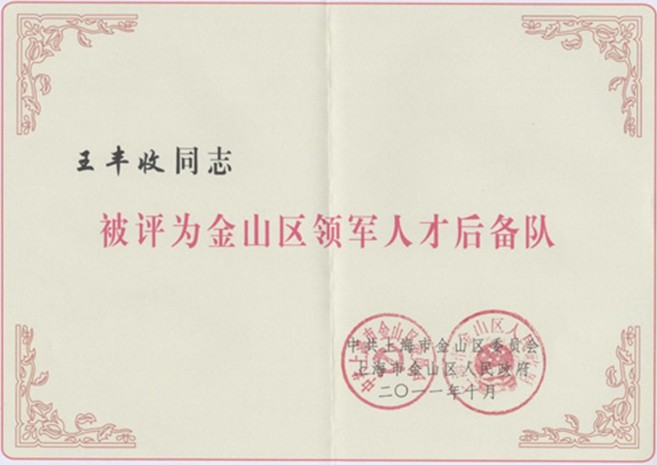 王豐收同志榮獲金山區(qū)領(lǐng)軍人才后備隊(duì)