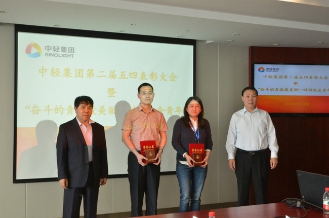 為表彰先進(jìn),樹立典型,增強(qiáng)共青團(tuán)活力和凝聚力,發(fā)揮共青團(tuán)團(tuán)員先鋒模范帶頭作用。201458日中輕集團(tuán)召開了主題為“奮斗的青春最美麗——對話央企青年”第二屆五四表彰大會(huì),我院王國永同志榮獲“中輕集團(tuán)青年五四獎(jiǎng)?wù)隆睒s譽(yù)稱號,并作為獲獎(jiǎng)代表做了“讓青春在科研一線閃光”的報(bào)告。