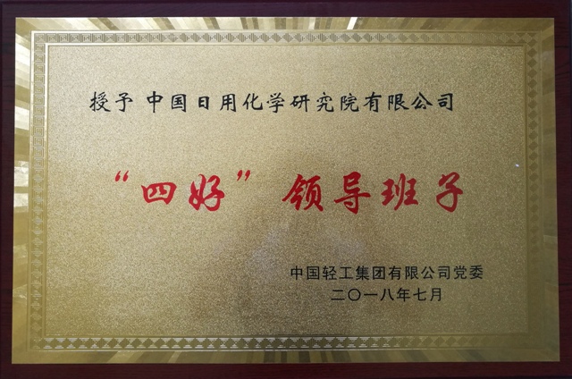 2018年7月17日,中國日化院被中國輕工集團(tuán)有限公司黨委授予 “四好領(lǐng)導(dǎo)班子”榮譽(yù)稱號。這是十八大以來,日化院繼2015年被評為2011—2014年“四好領(lǐng)導(dǎo)班子”之后,連續(xù)第二次獲此殊榮。